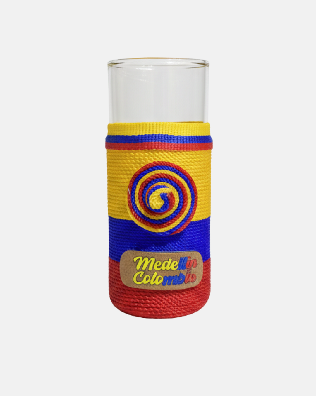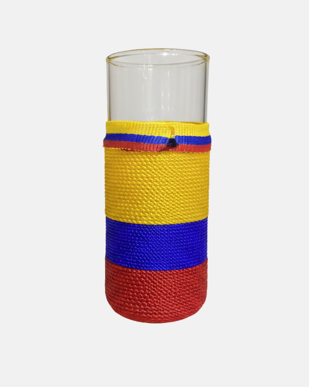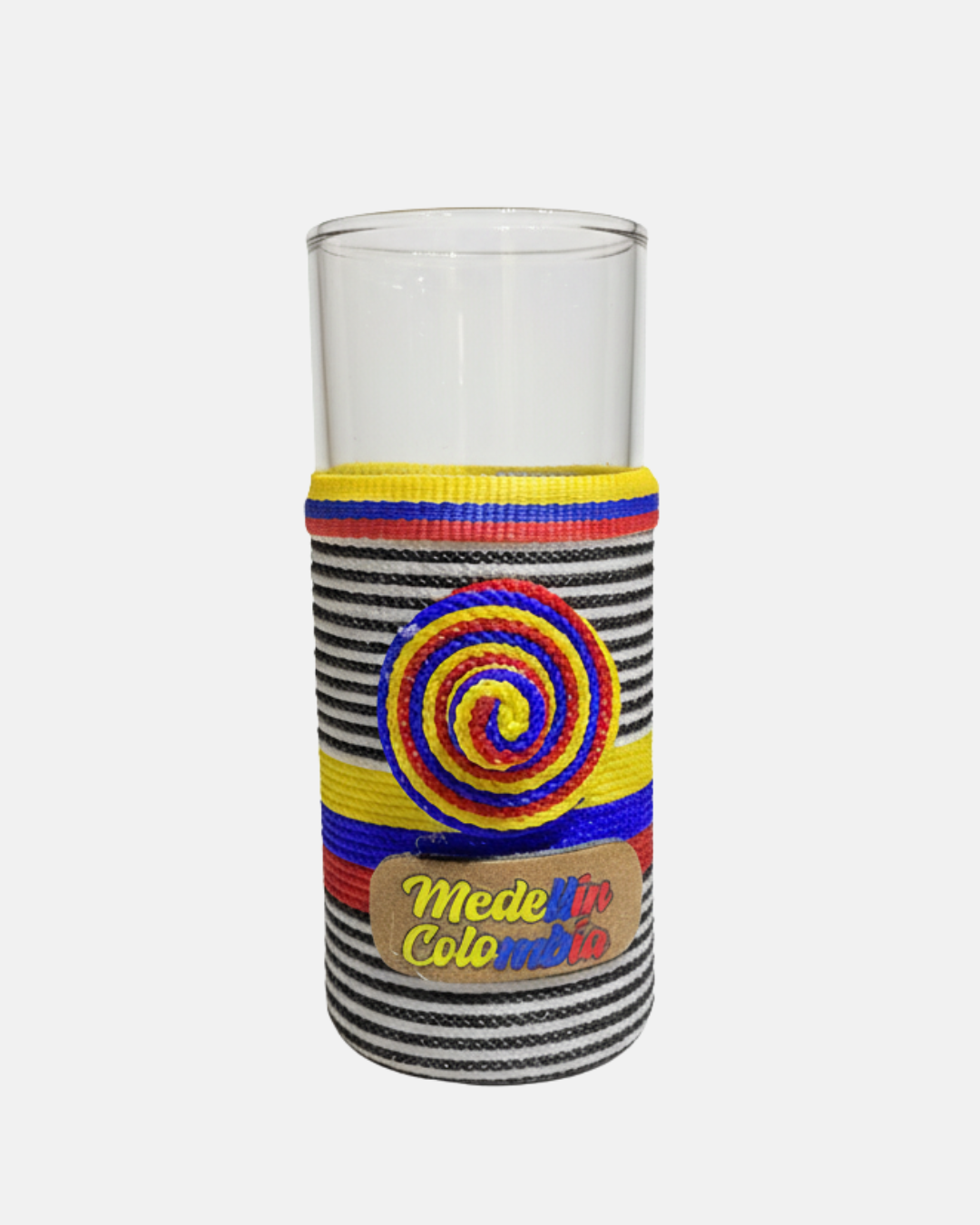 El arte colombiano hecho detalle. Decorada con hilos tejidos a mano, esta copa fusiona lo tradicional con lo moderno. Perfecta para quienes aman lo artesanal y lo diferente.